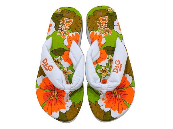 D&G junior 2009年新作! レビューを書くと送料無料!D&G junior 靴【オレンジ×ナチュラル L93679 OLGB3 A.0351 D&G金具付きハイビスカスプリントサンダル(3